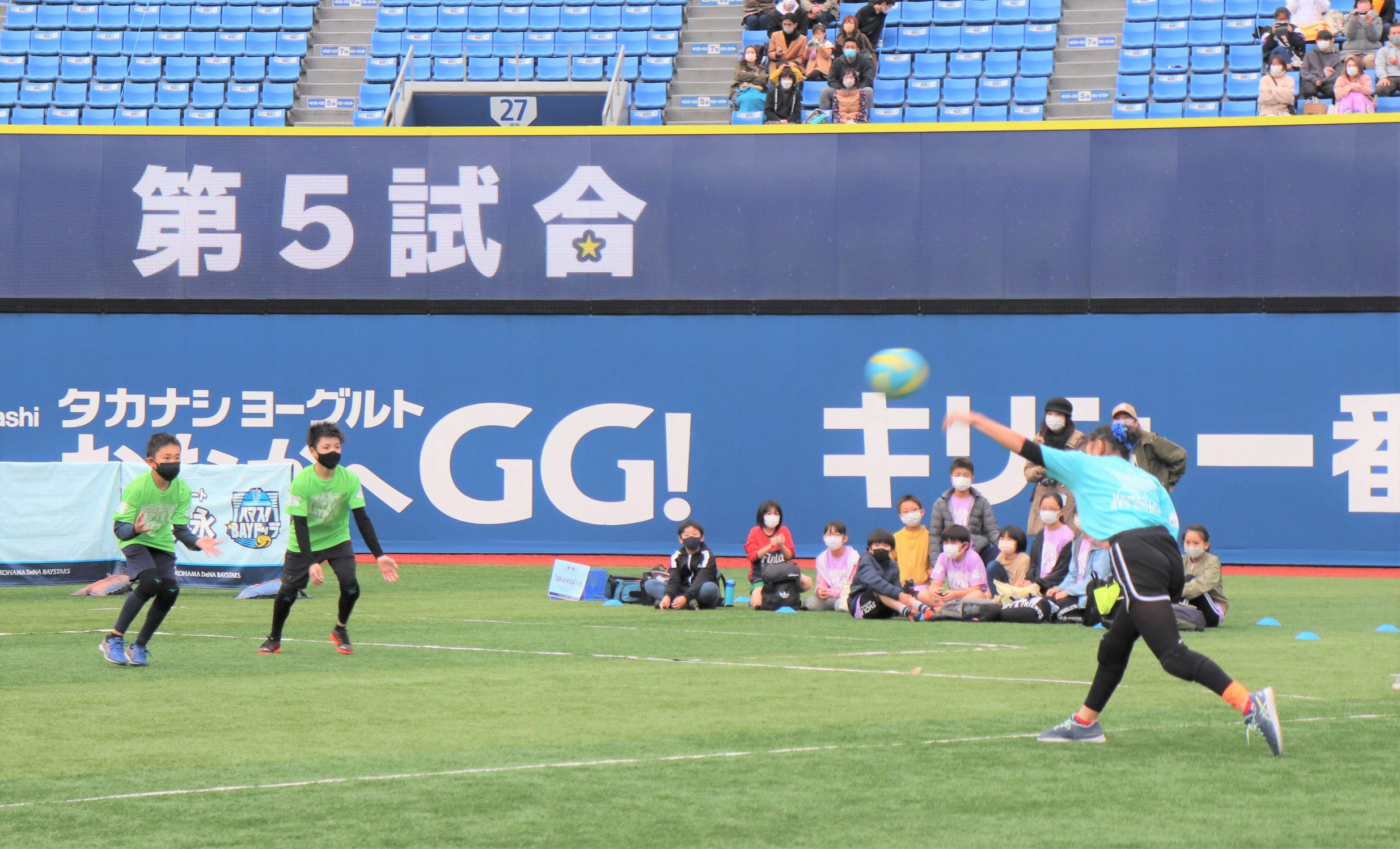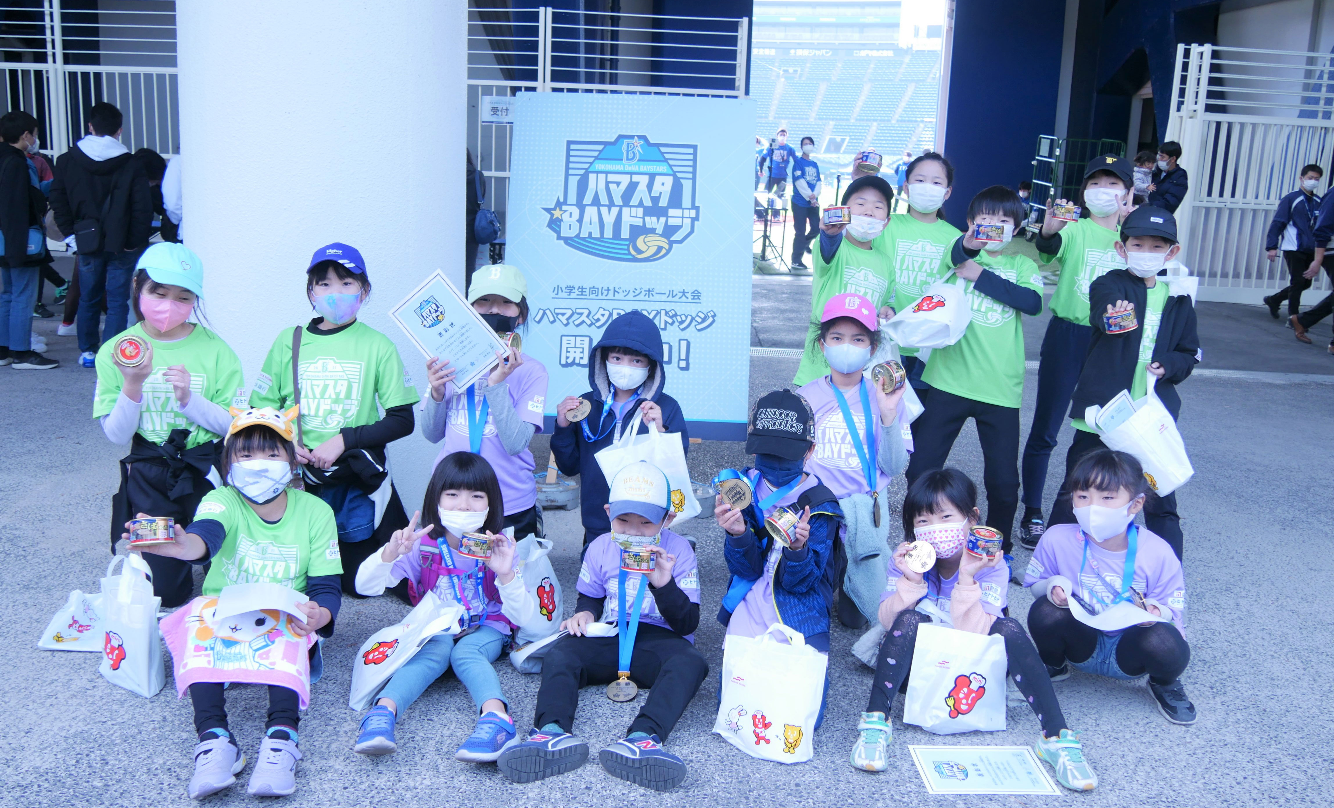 このたび、この活動の一環である、小学生ドッジボール大会「ハマスタBAYドッジ2021」が開催され、参加した約550人の子どもたちへ「月花さば水煮」「マサバのペーパークラフト」をサンプリングしました。