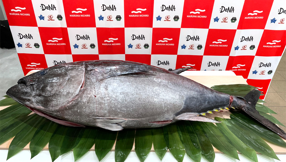 3月12日(土)に行われた第97回天皇杯 全日本バスケットボール選手権大会での優勝、そしてクラブ初の2連覇達成のお祝いとして、川崎ブレイブサンダースの選手寮へ、鹿児島県奄美大島の養殖場で約50㎏に育ったクロマグロを1本丸ごとお届けしました。
