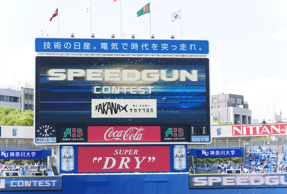 6月4日に行われた横浜DeNAベイスターズと東北楽天ゴールデンイーグルスとの試合。Umiosが冠スポンサーとなり「Umios サカナクロス(※)ゲーム」として開催されました。球場内大型ビジョンでは、「SAKANA X SPOTRS」のイメージ動画や、Umiosの冷凍食品TV-CMが放映されました。