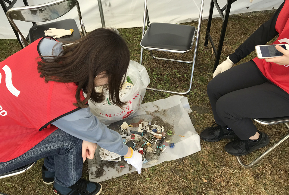 同大会会場でのクリーンアップ活動「Make Sea Happy!」は昨年に引き続き2回目の開催で、1日目は雨天だったにもかかわらず積極的にご参加いただき、2日間とも参加してくださる方もいらっしゃいました。2日間で1068個のプラスチック片をはじめとする、多くのゴミを回収しました。