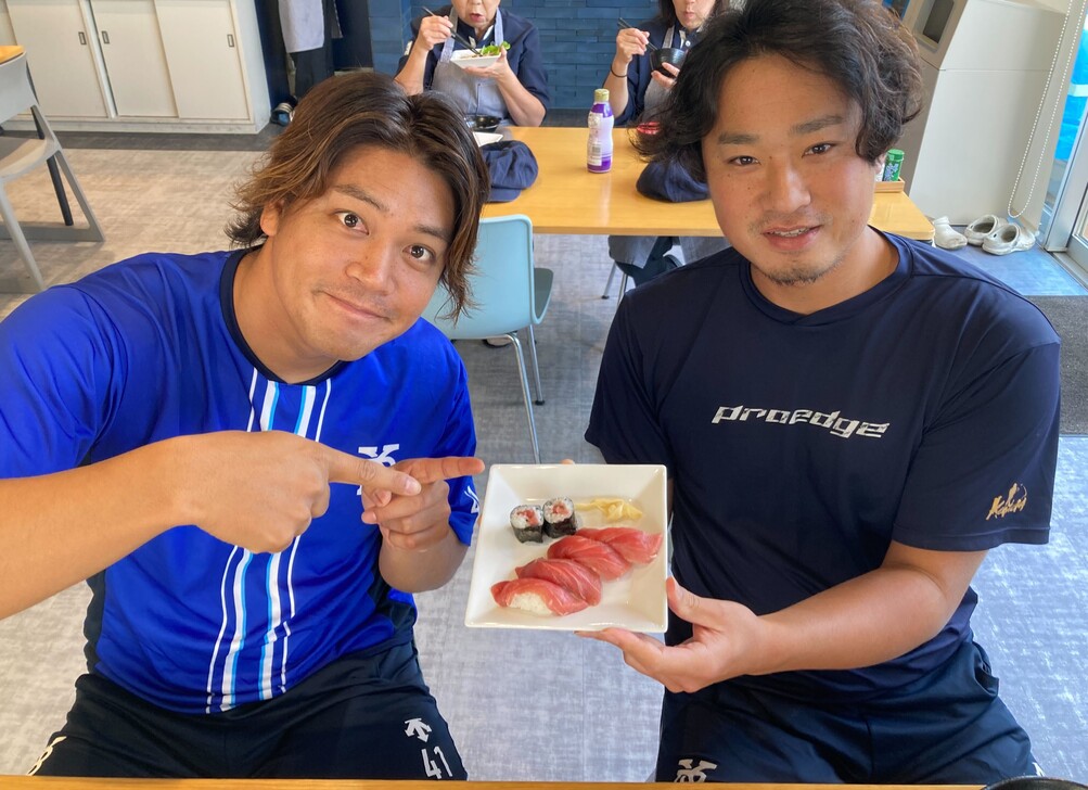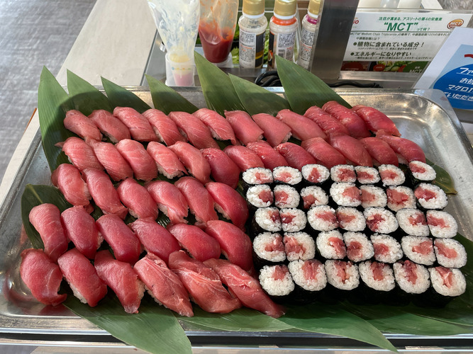 お届けしたマグロは青星寮のシェフの方に捌いていただき、お刺身やお寿司として、選手やスタッフの皆さまにふるまわれました。