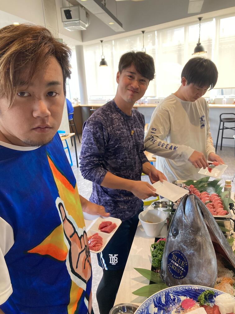 マグロを楽しむ選手の皆さま